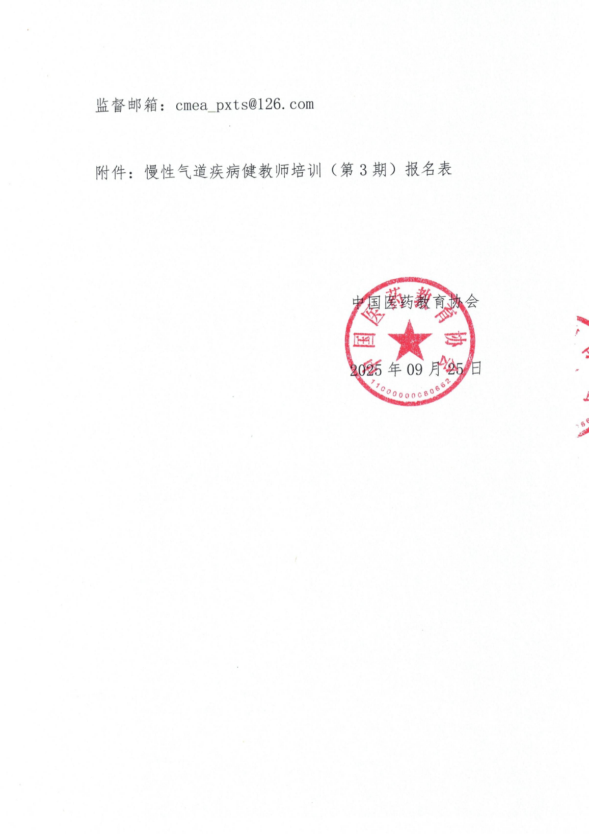 药教协培字478号--关于“慢性气道疾病健教师培训”项目(第3期)第一次培训的通知