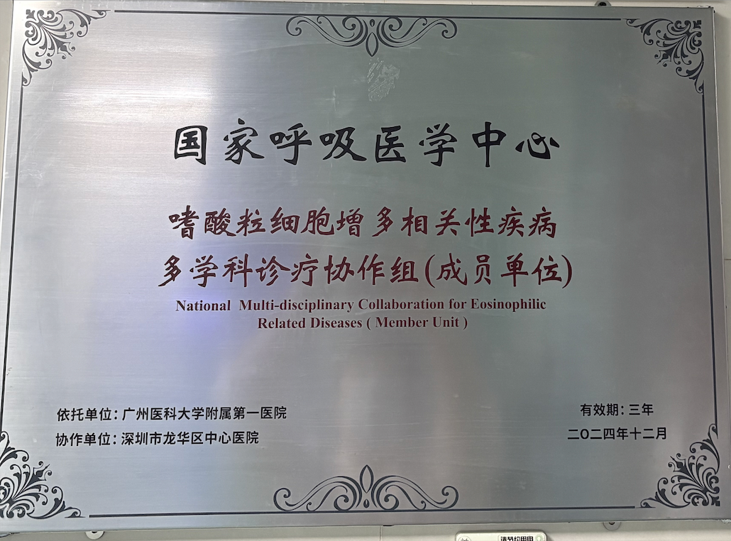 呼吸与危重症医学科是龙华区医学重点建设单位,设备投入超1000万元,属于国家PCCM规范化建设三级医院达标单位,隶属中国肺癌防治联盟,是国家呼吸医学中心嗜酸粒细胞增多相关性疾病多学科诊疗协作组成员单位,国家呼吸系统疾病临床医学研究中心深圳网络单位,深圳咳喘管理联盟成员单位。