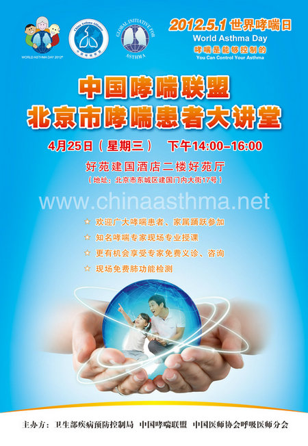 上一篇: “哮喘是能够控制的”---世界哮喘日再次强调5年内全球哮喘住院减少50%的控制目标 下一篇: 2012年世界哮喘日宣传海报
