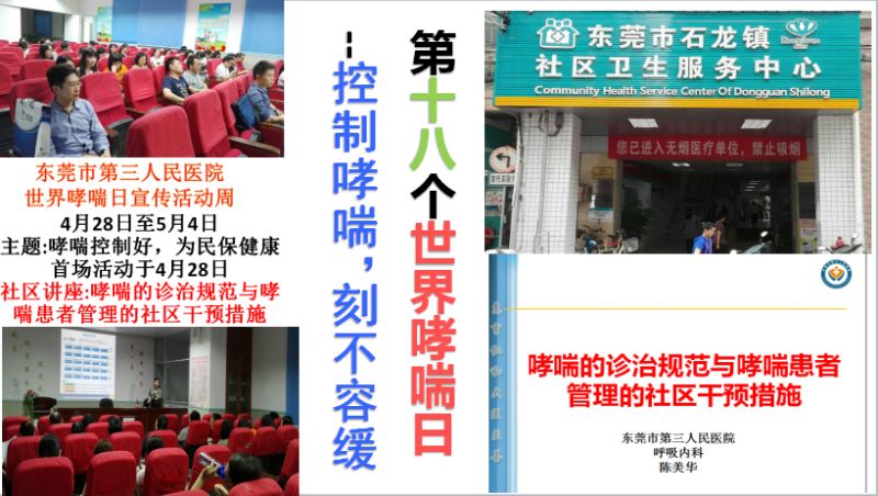 广东省南方医科大学南方医院、珠江医院,广州医科大学呼吸疾病研究所,广东省人民医院,中山大学附属第一医院和第三医院,解放军421医院,番禺中心医院,佛山第一人民医院,中山市人民医院,中山市小榄人民医院,汕头大学第一附属医院,清远市人民医院,东莞市第三人民医院,深圳市人民医院等单位积极参与,举办了丰富多样的活动。相较往年,除了专家义诊及健康讲座外,很多单位研究生,护技人员积极参与,今年同时呈现出更多丰富多彩的形式,如义诊进社区,通过羊城晚报、老人报,南方日报,三九健康网,家庭医生在线,好大夫及微信平台等途径,提前宣传,事后报道,同是进行大型宣讲及发表宣教文章,包括广州呼吸疾病研究所钟南山院士“哮喘健康大讲堂”、南方医院蔡绍曦主任“哮喘要一辈子用药”,广东省人民医院吴健主任“小心了!家里有导致宝宝哮喘暗器”。南方医院赵海金:“哮喘防治三大误区”等等,大大提高了人们对哮喘防治的认知水平。