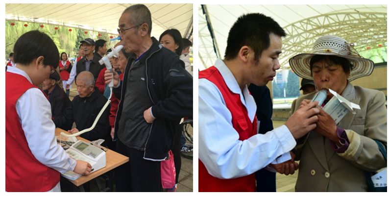 活动现场,医生们不仅为前来咨询的群众和患者耐心细致的讲解哮喘的诱发因素、用药治疗的注意事项、哮喘的症状、监测方法及“峰流速仪”如何正确使用等内容,而且现场为哮喘患者检测肺功能。