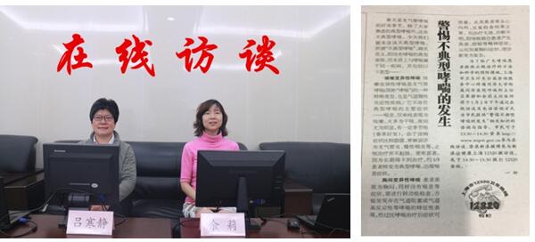 7. 同济医院呼吸科在5月2日下午,由吕寒静、余莉主任医师在上海市健康教育所,就不典型哮喘与广大网友进行了互动,让更多人了解咳嗽变异性哮喘、胸闷变异性哮喘等疾病同样需要及时诊治。并提前在媒体上发表了相关宣传文章。