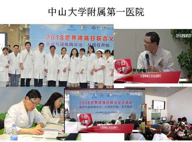 南方医科大学南方医院、广州医科大学第一附属医院呼吸健康研究院,中山大学附属第一医院,广东省人民医院,番禺中心医院,广东医科大学附属医院,佛山第一人民医院,中山市人民医院,中山市小榄人民医院,湛江市中心人民医院,东莞市第三人民医院,东莞市东华医院,茂名市人民医院及深圳市多家单位积极参与,举办了丰富多样的活动。今年仍然呈现丰富多彩的形式,通过广东卫视、珠江台,广东新闻、羊城晚报、新快报、信息时报、南方日报、三九健康网、家庭医生在线、老人报、好大夫及微信平台等途径,提前宣传,事后报道。义诊期间同时进行大型宣讲及发表宣教文章,包括广州呼吸疾病研究所钟南山院士健康大讲堂《谈“哮”风生》并网络直播,李靖教授《过敏与哮喘》,中大附一郭禹标主任《哮喘自我管理中国专家共识解读》,变态反应专科徐睿教授《儿童哮喘的诊治与管理》。广东省人民医院吴健主任:《成人哮喘的防治和自我管理》,南方医科大学南方医院赵海金副主任医师:《哮喘长期管理策略》,佛山市第一人民医院莫冠文医生:《哮喘患者的家庭环境要求》、陈晓倩医生《儿童哮喘防治》。番禺中心医院李寅环主任医师:《哮喘的自我管理》,东莞第三人民医院陈美华主任:《如何正确认识哮喘》,东莞东华医院张丽主任:《哮喘发作如何应对》等等。
