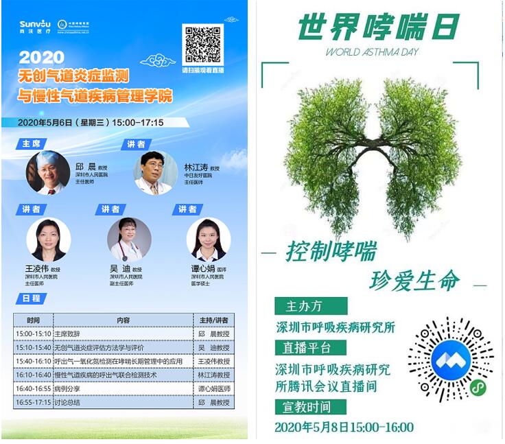2020年无创气道炎症监测与慢性气道疾病管理学院讲座海报;世界哮喘日深圳呼研所健康讲座海报