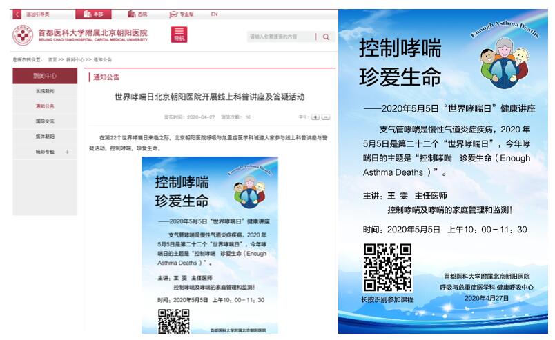 控制哮喘,珍爱生命—北京朝阳医院呼吸与危重症医学科“世界哮喘日”线上科普讲座