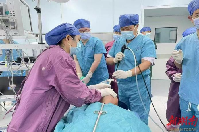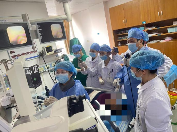(四)科研与技术成果:科室在呼吸介入技术领域形成鲜明区域优势,擅长复杂气道疾病介入治疗、呼吸危重症救治及肺结节精准诊疗,在全省地州市级医院中率先开展多项支气管镜下介入治疗技术,包括支气管针吸活检术、经皮针吸肺活检术、球囊扩张术、支气管硬镜介导下氩等离子体凝固术、高频电灼、冷冻、气道内支架植入术、异物取出术,以及放射性碘125粒子植入术、肺结节微波消融、肺气肿热蒸汽消融、内科胸腔镜介入诊疗等,其中支气管硬镜技术处于湖南省领先水平,成功攻克多项临床技术难题,救治大量疑难危重患者。
