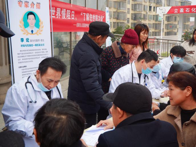(三)人才培养与基层赋能:作为国家级重点专科建设单位,学科始终牢记责任与担当,牵头组建岳阳市呼吸疾病防治基层联盟与呼吸医联体,与40余家基层医疗机构建立深度合作关系。通过定期开展基层医务人员培训、质控抽查指导,建立医联体双向转诊机制,实现资源共享与技术下沉。每年开展国家及省市级学术会议、基层医师培训班10余次,采用线上线下结合形式覆盖湘北地区各级医疗机构,累计培训基层医师500余人次;在世界哮喘日、世界慢阻肺日等节点,开展免费义诊、肺功能筛查、健康咨询及诊疗工具赠送活动,推动呼吸疾病规范化诊疗技术扎根基层。通过双向转诊、远程会诊、技术指导等方式,推动区域呼吸健康水平整体提升。
